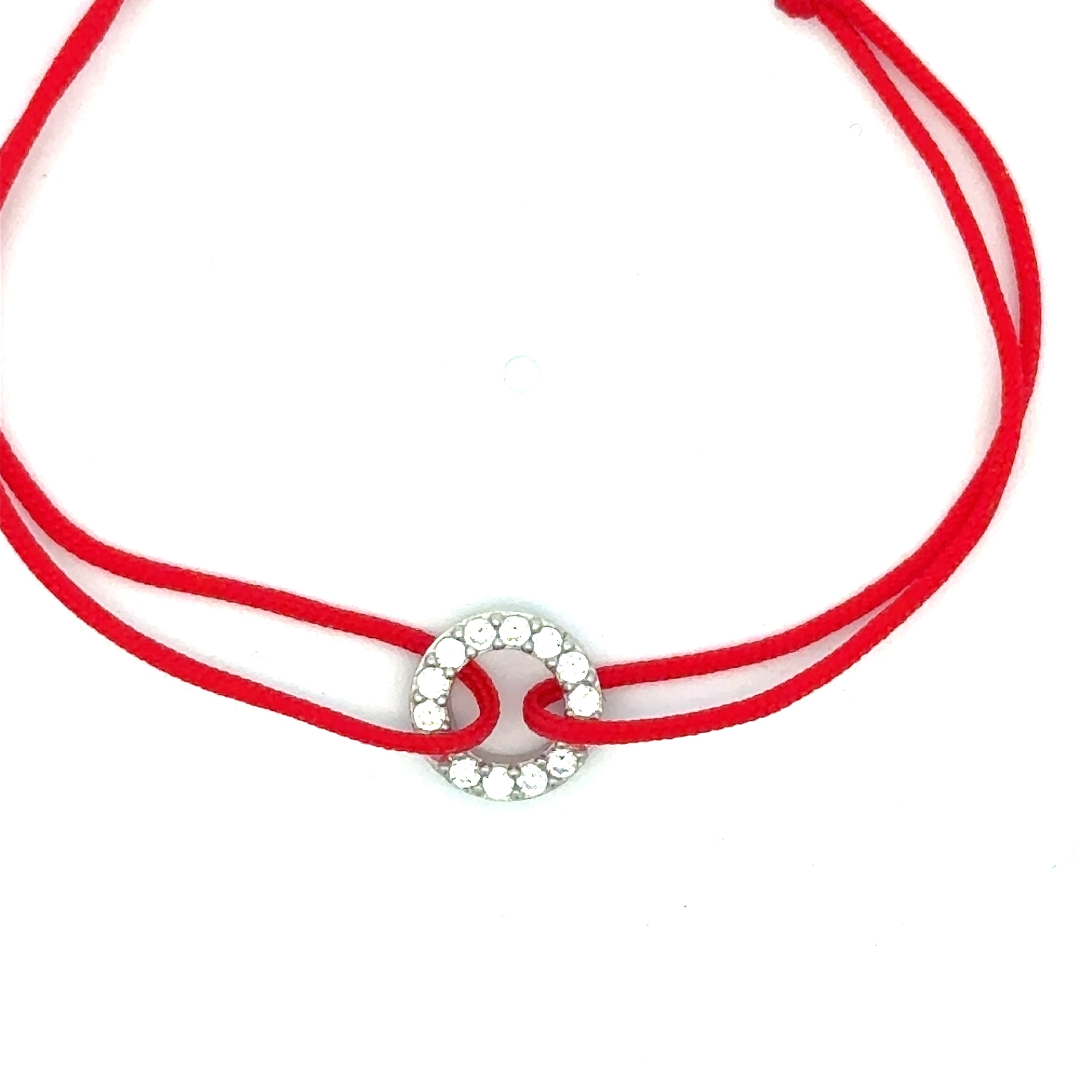 Brățară copii Cerc, argint + zirconia+sfoară roșie
