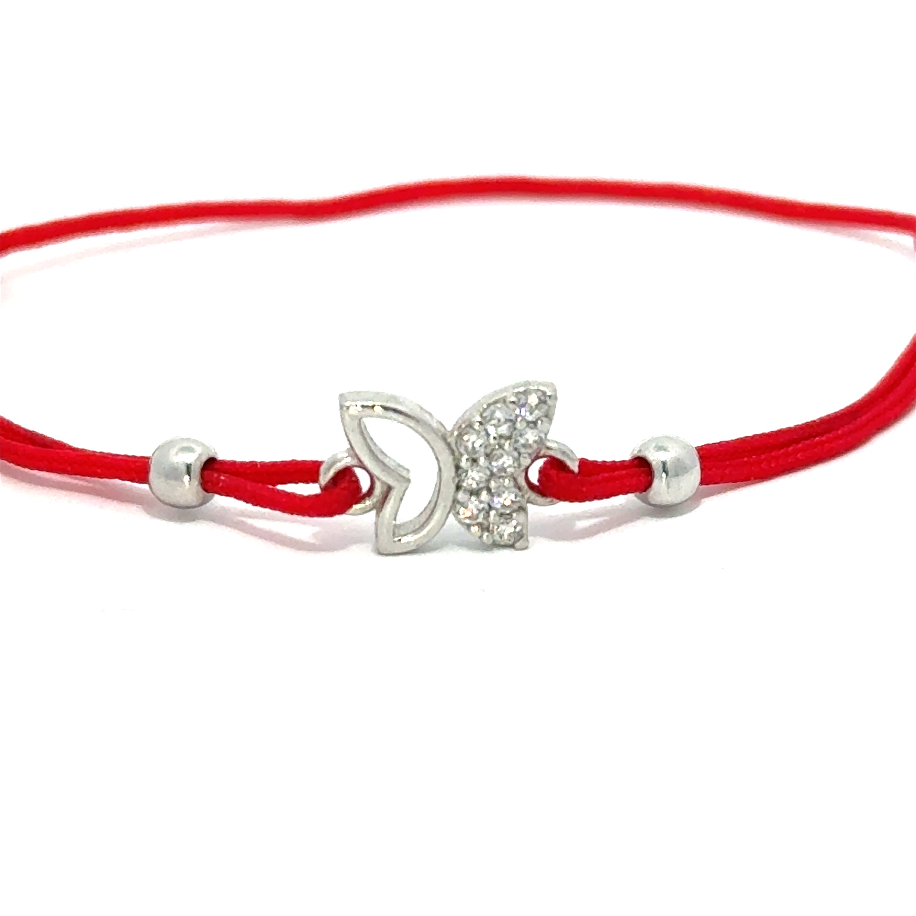 Brățară copii cu pandantiv fluture - O brățară delicată pentru cei mici, realizată din sfoară roșie moale și rezistentă, decorată cu un pandantiv adorabil în formă de fluture. Simbol al libertății și al bucuriei, fluturașul adaugă un strop de culoare și veselie oricărei ținute. Brățara este ușoară, confortabilă și ajustabilă, perfectă pentru a fi purtată zilnic sau oferită cadou cuiva drag.