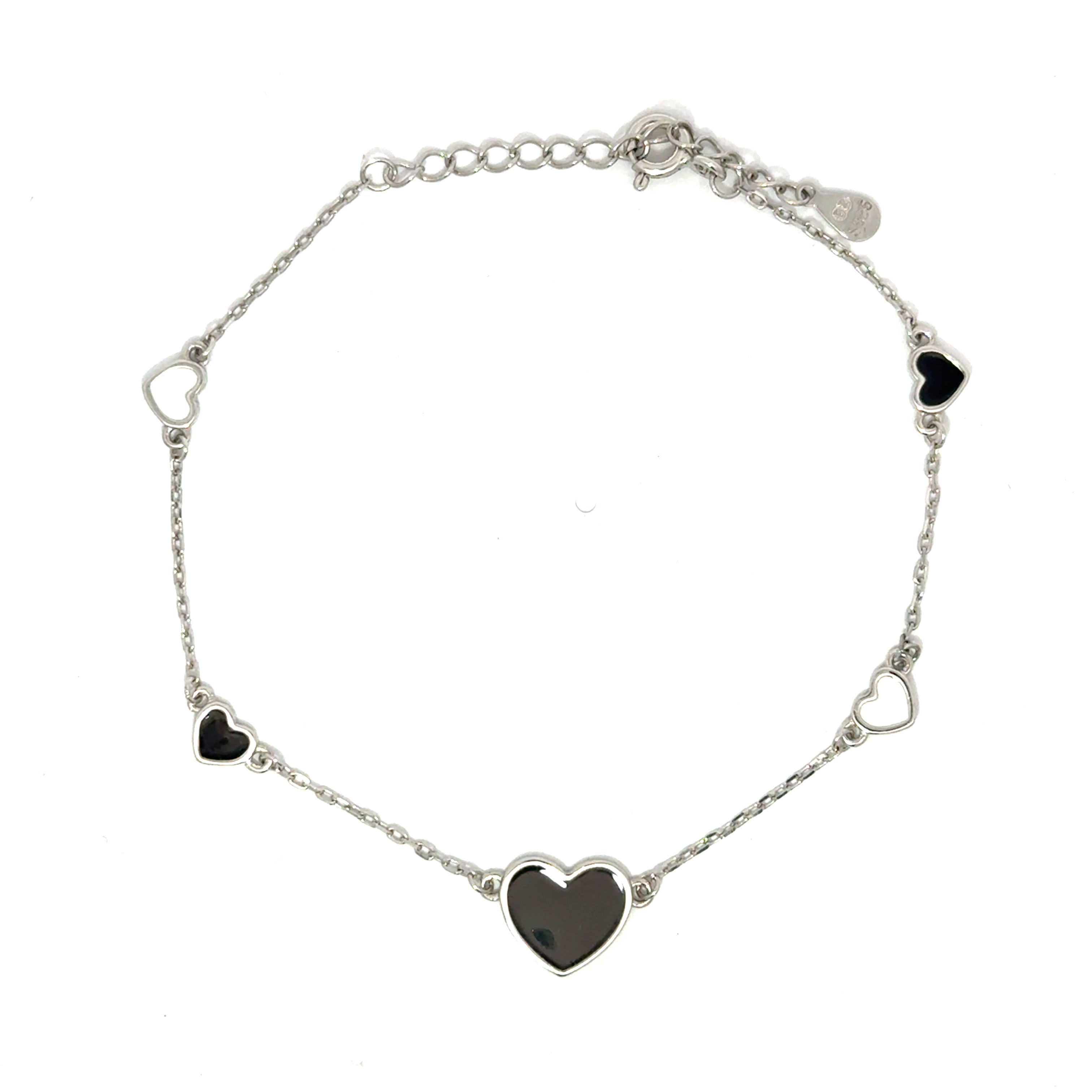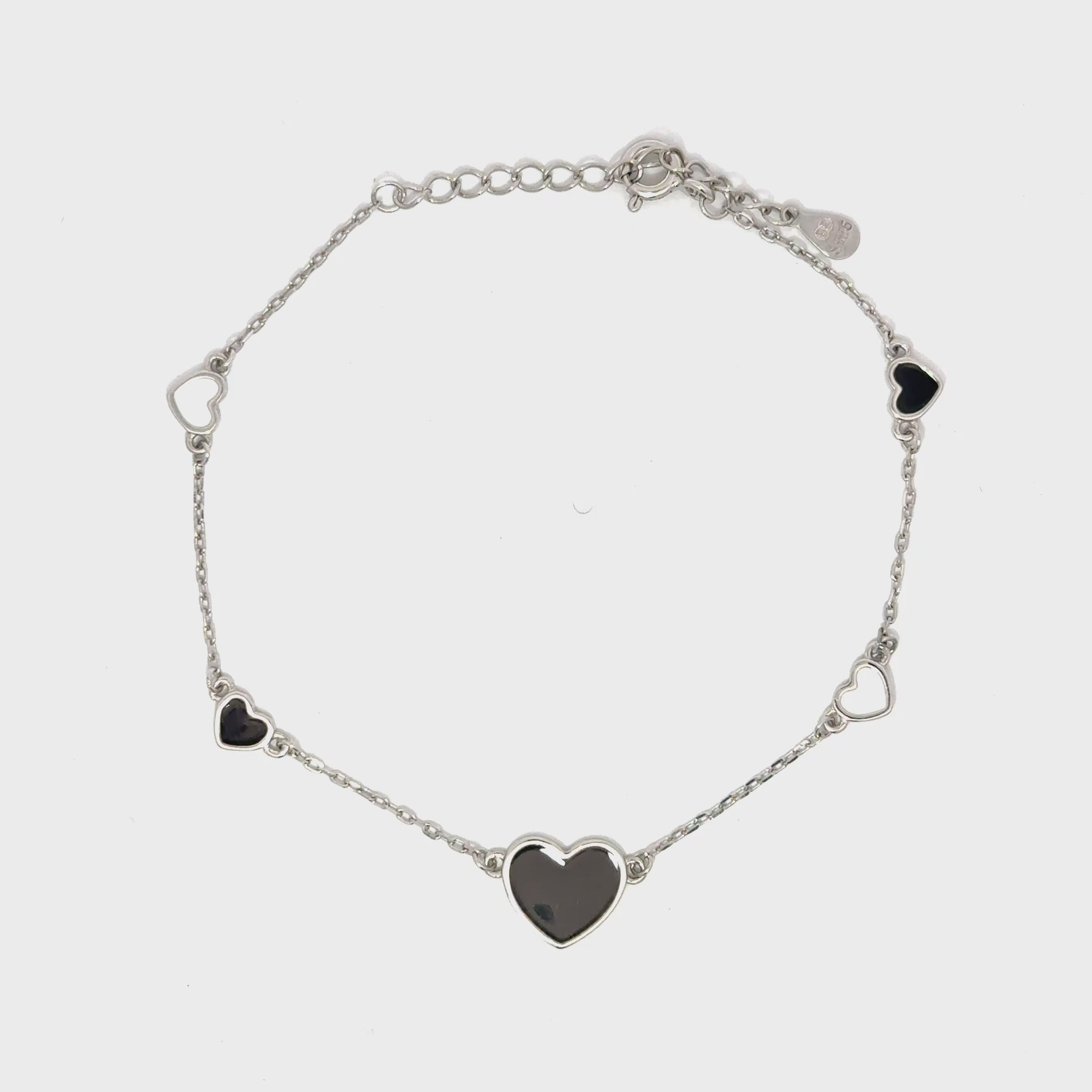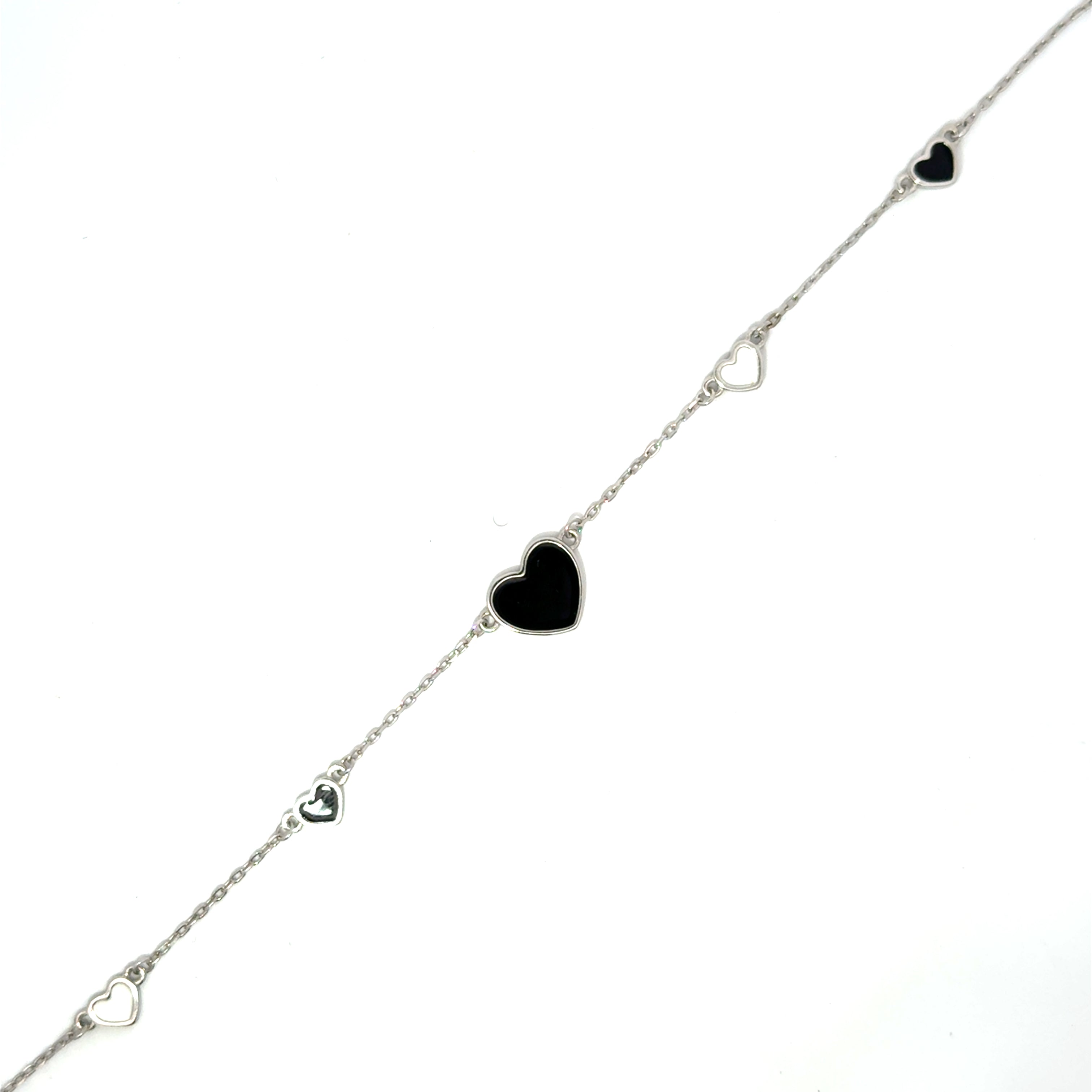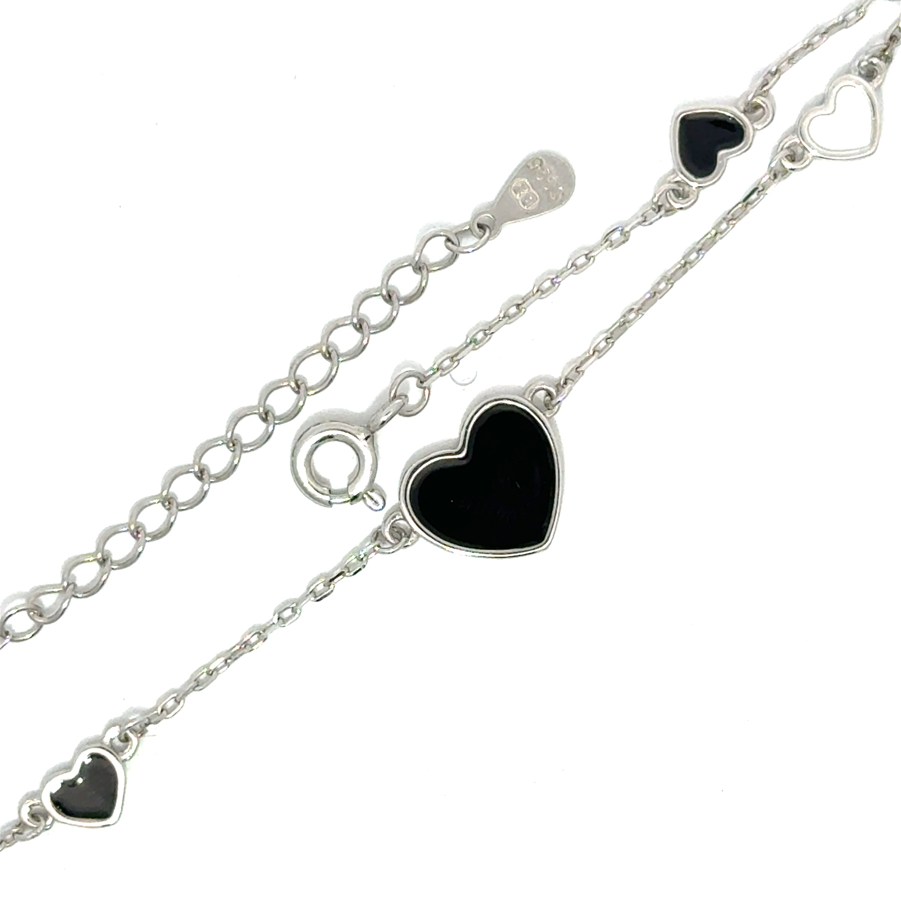 Brățară damă din argint cu accesorii Inimi negre și albe – eleganță într-un design rafinat