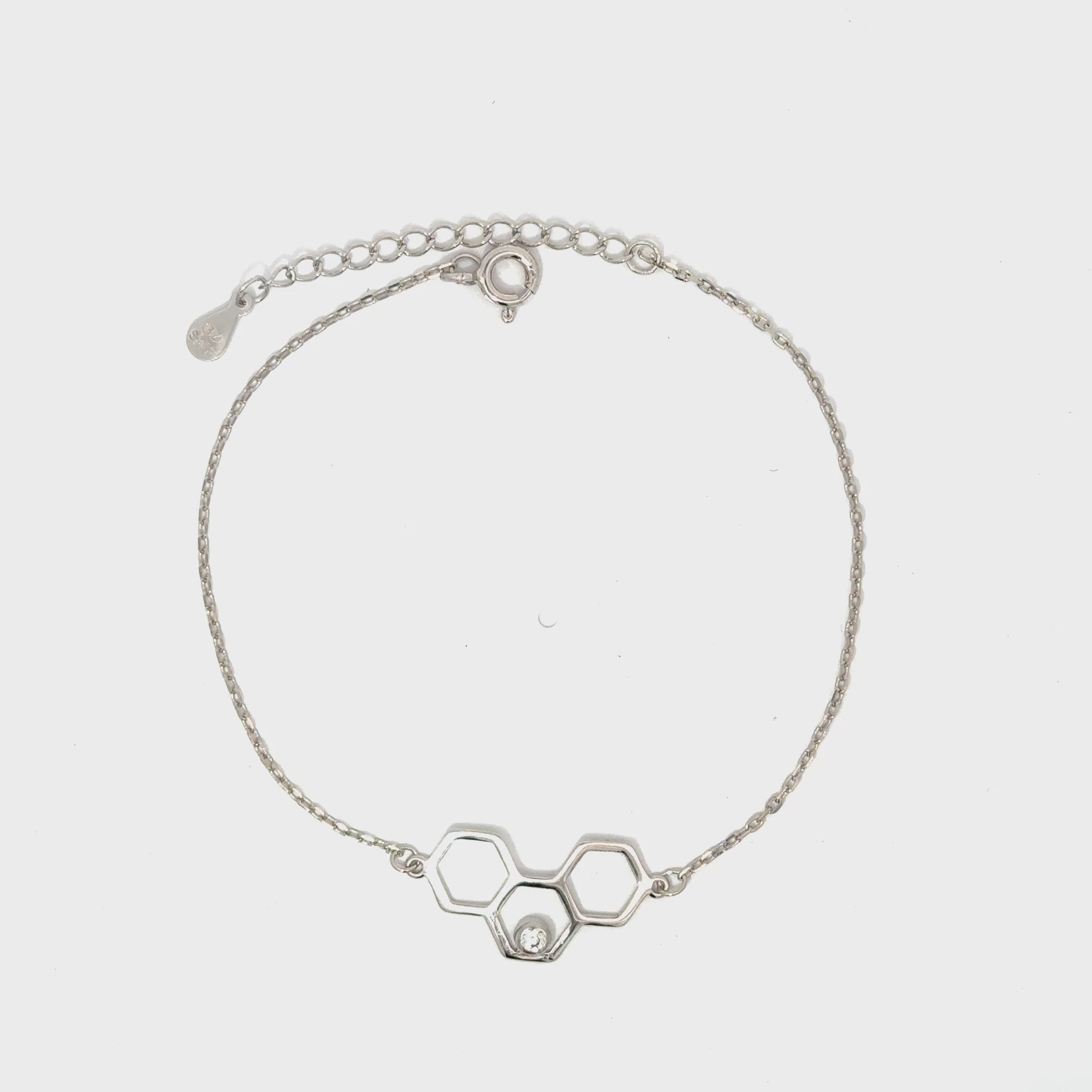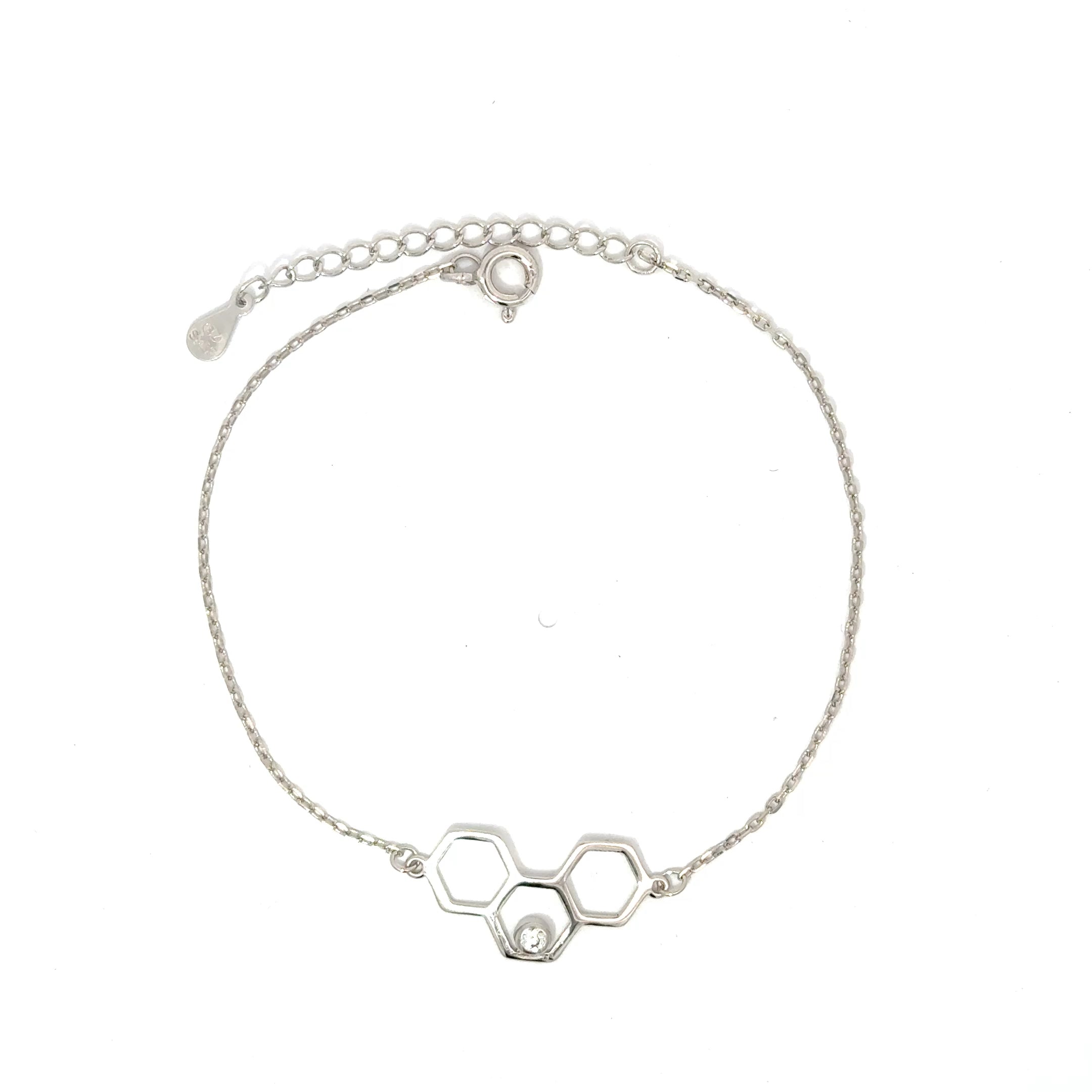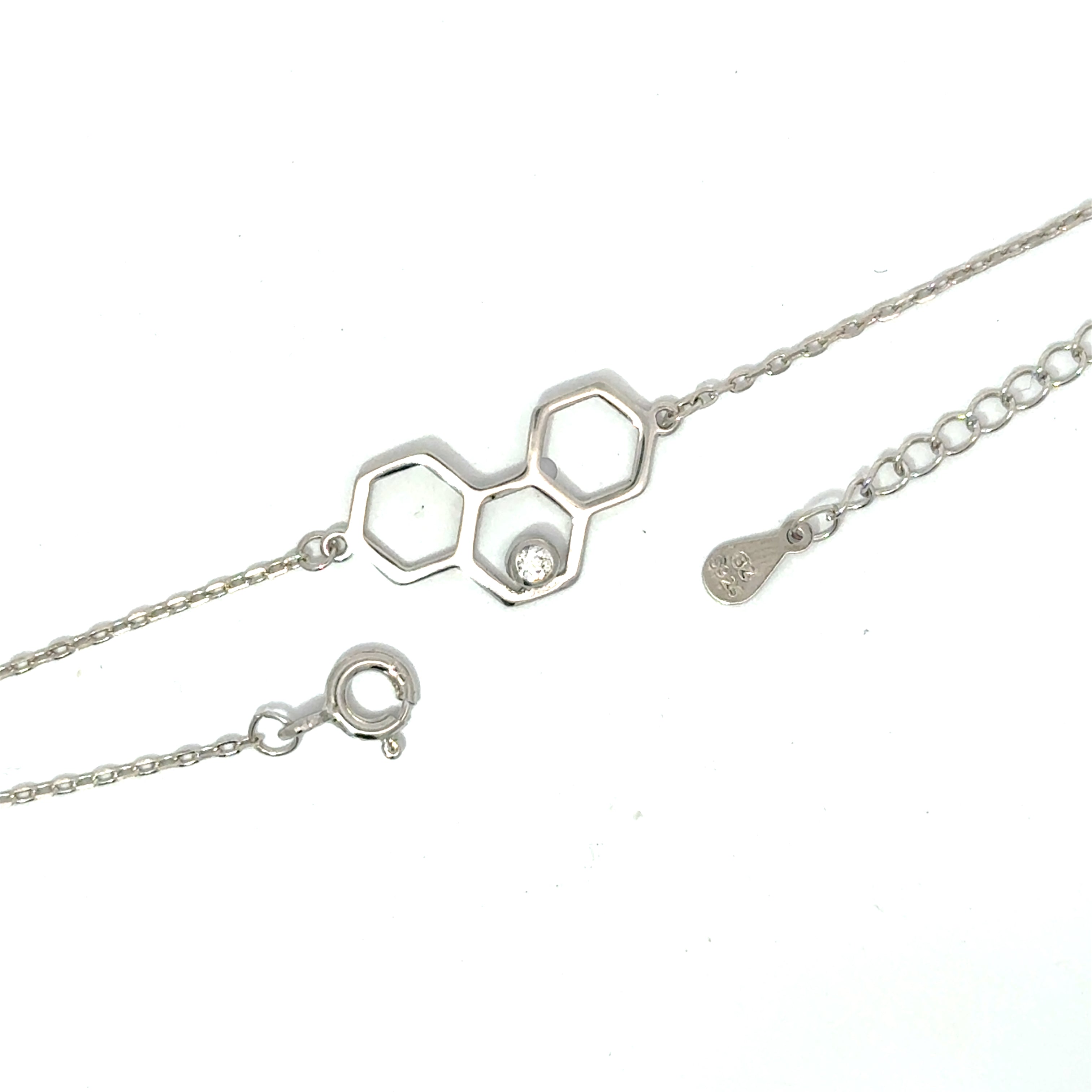 Brățară din argint 925, cu design inspirat de forma unei molecule – simbol al conexiunilor invizibile care ne unesc. O bijuterie modernă, minimalistă, perfectă pentru cei care iubesc știința, echilibrul și eleganța detaliilor.