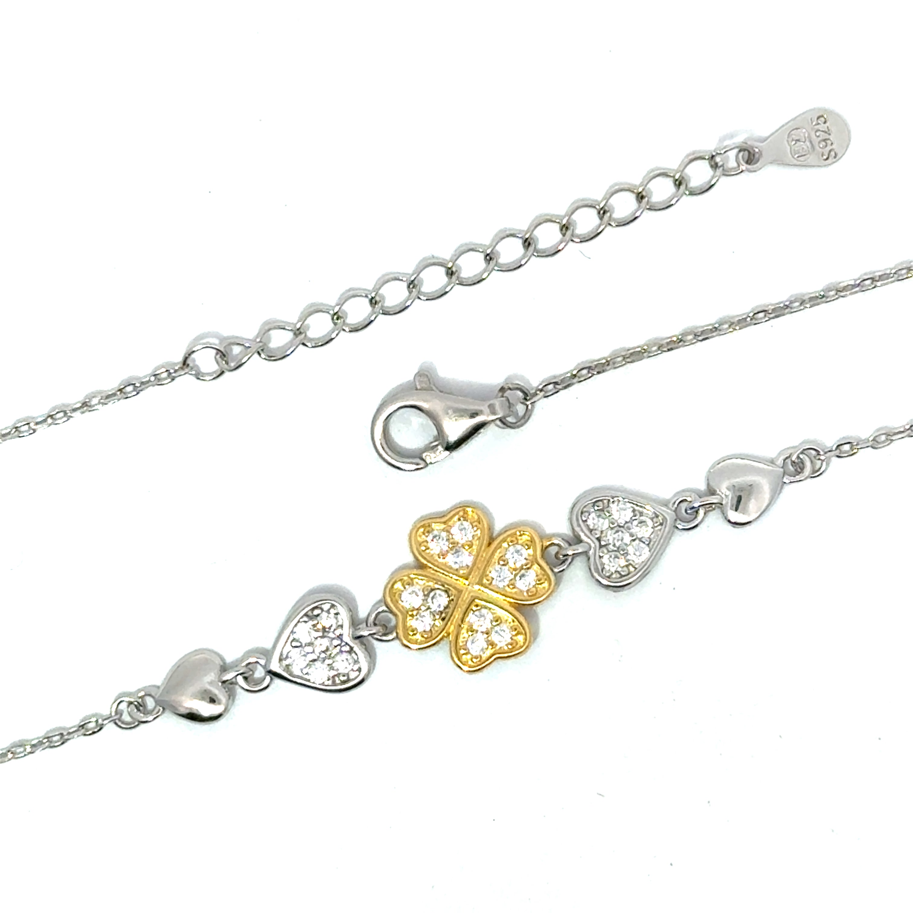 Brățară damă Trifoi Auriu, argint + zirconia