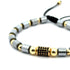 O brățară masculină, modernă și elegantă, care combină rezistența metalului comun cu rafinamentul accesoriilor aurii. Designul său sofisticat o face ideală pentru purtare zilnică sau pentru ocazii speciale.