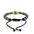 Îmbină stilul masculin cu eleganța discretă prin această brățară din metal comun și pietre de hematit. Designul său modern și texturat o face potrivită atât pentru purtare zilnică, cât și pentru ocazii speciale, adăugând un accent sofisticat oricărui outfit.