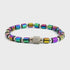 Bratara barbati elastica, cu bile din hematit magnetic electroplacat multicolor si accesorii argintii