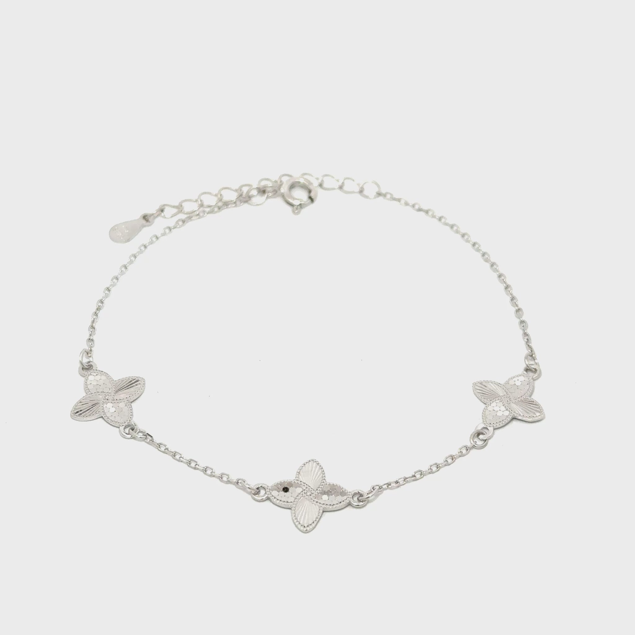 Brățară damă 3 FLORI, argint rodiat