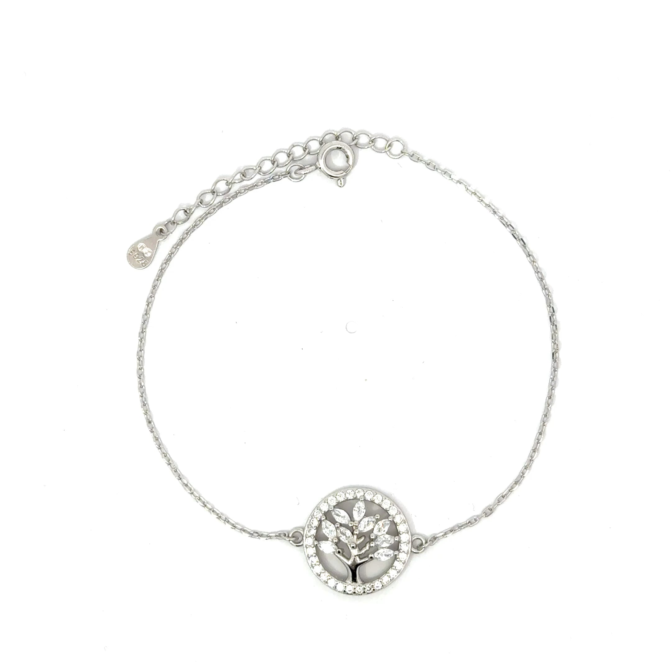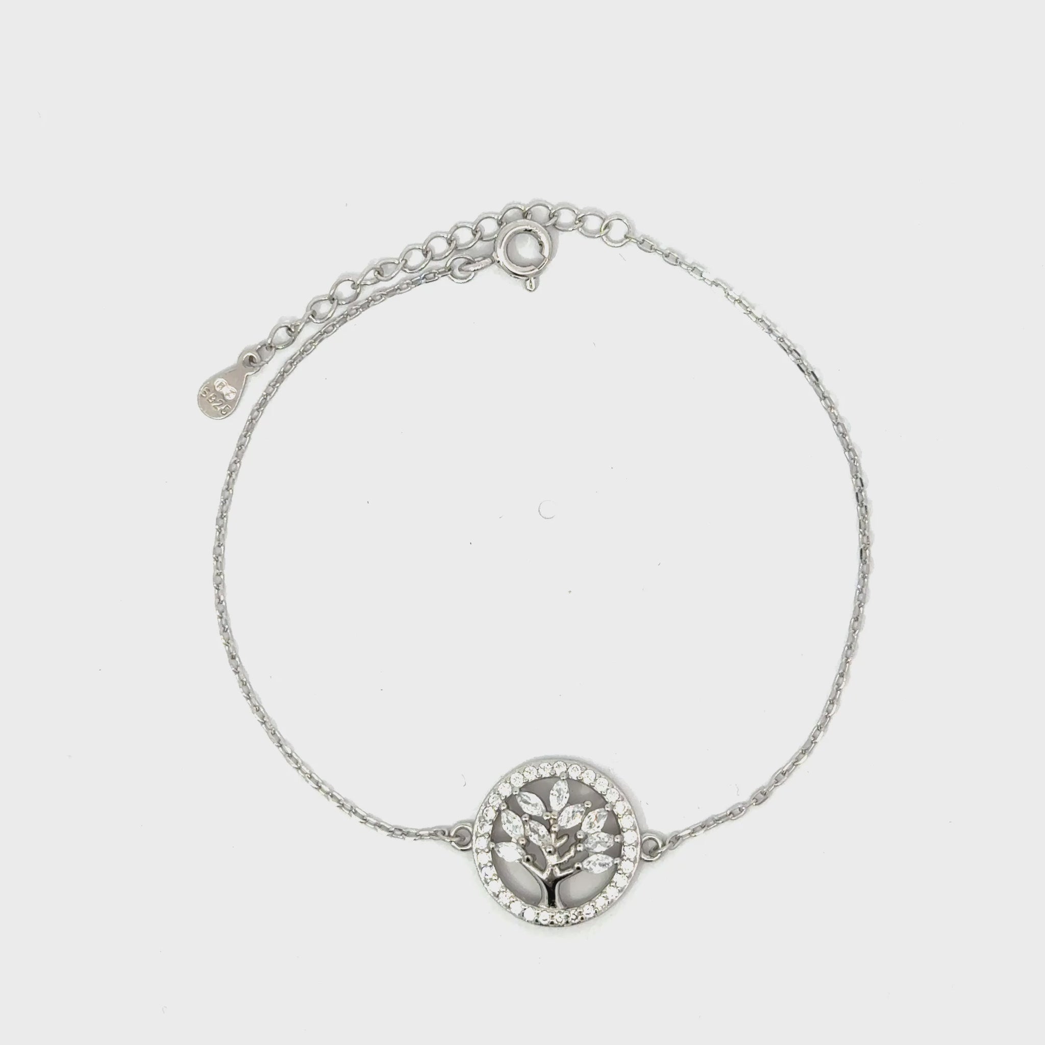 Brățară din argint 925 cu simbolul Copacului Vieții, decorat cu cristale zirconia strălucitoare. Un accesoriu elegant și plin de semnificație, care aduce echilibru, energie pozitivă și un strop de rafinament oricărei ținute. Perfectă pentru a fi oferită cadou sau purtată zilnic ca simbol al forței interioare și al creșterii personale.