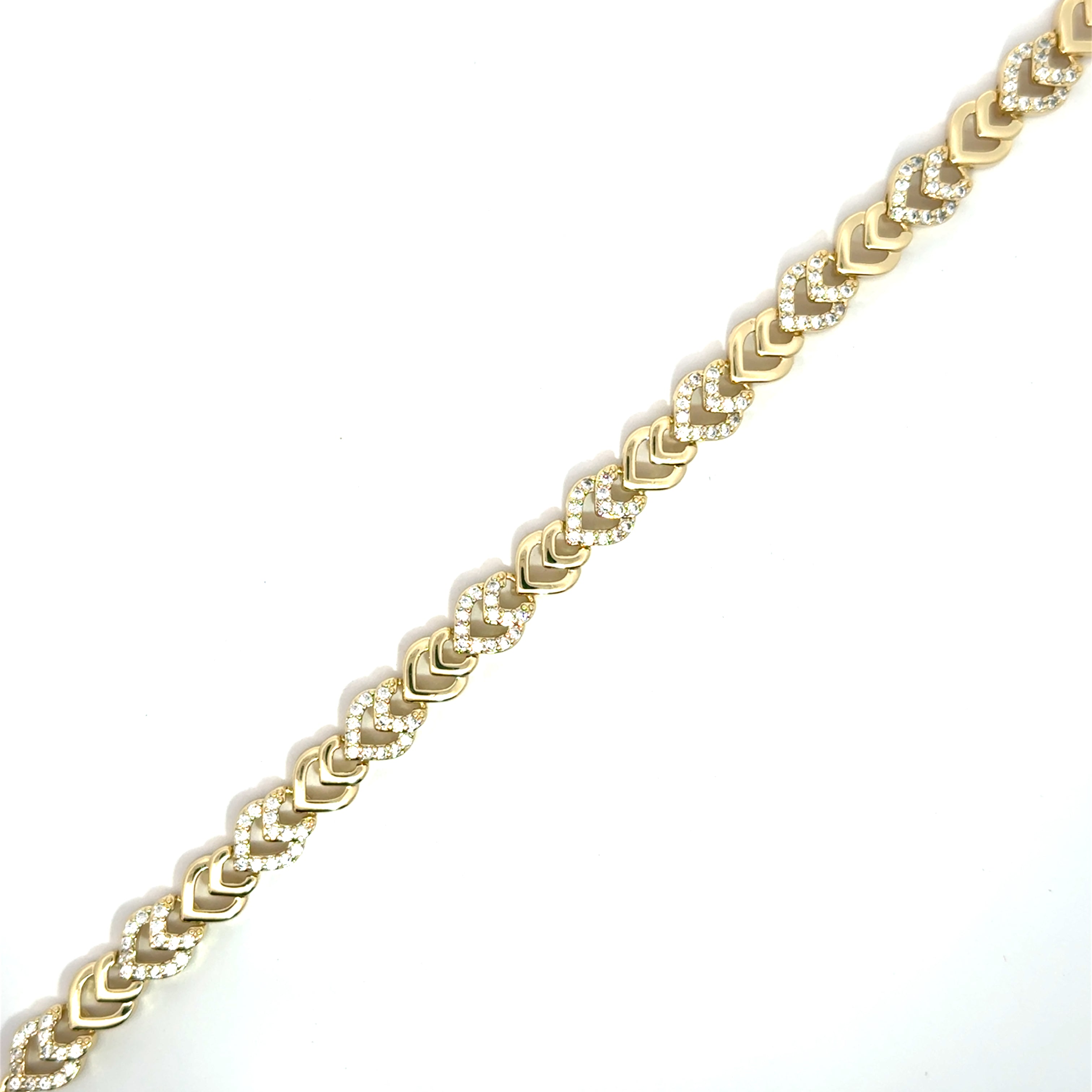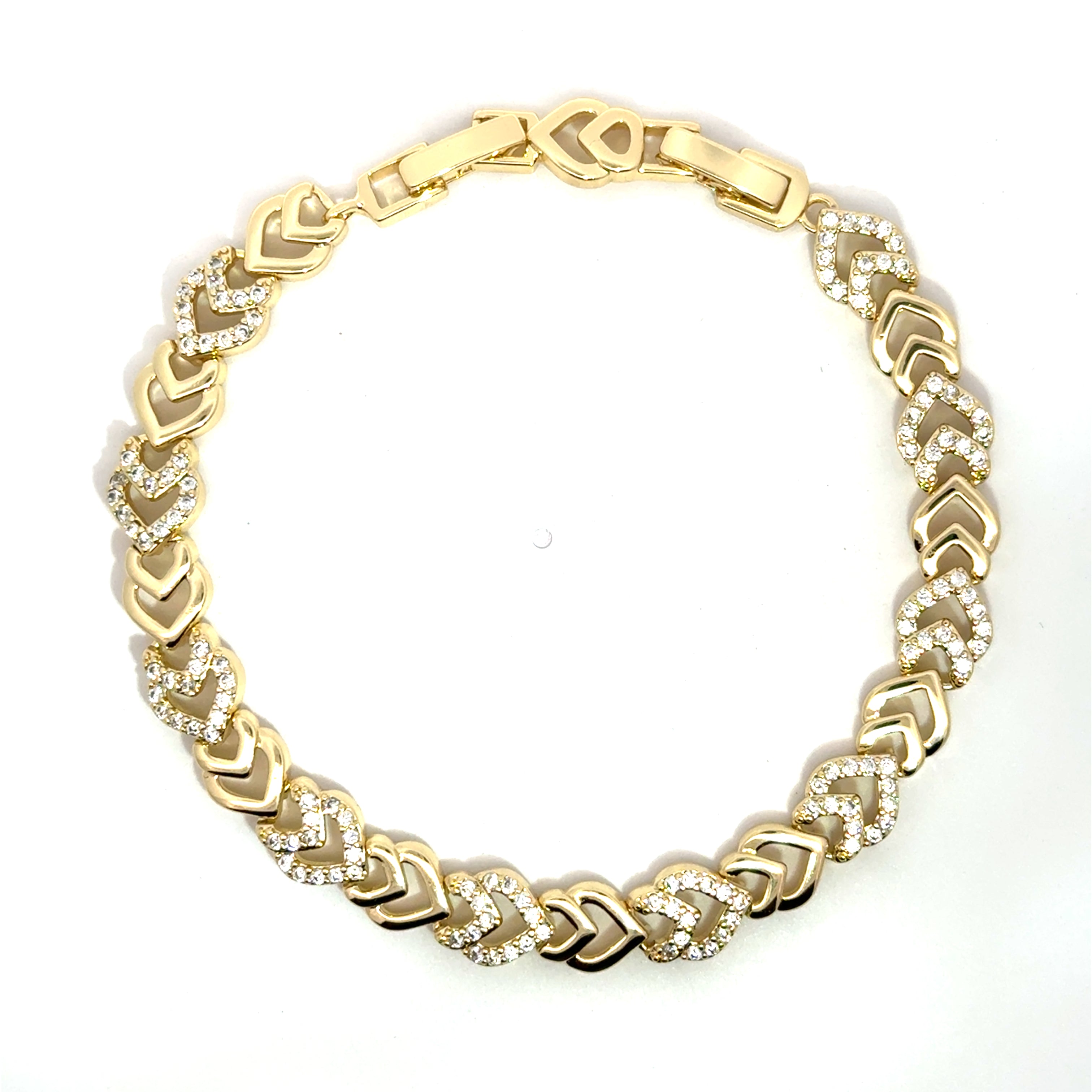 Brătară damă INIMI SUPRAPUSE, placată cu Aur și Zirconia