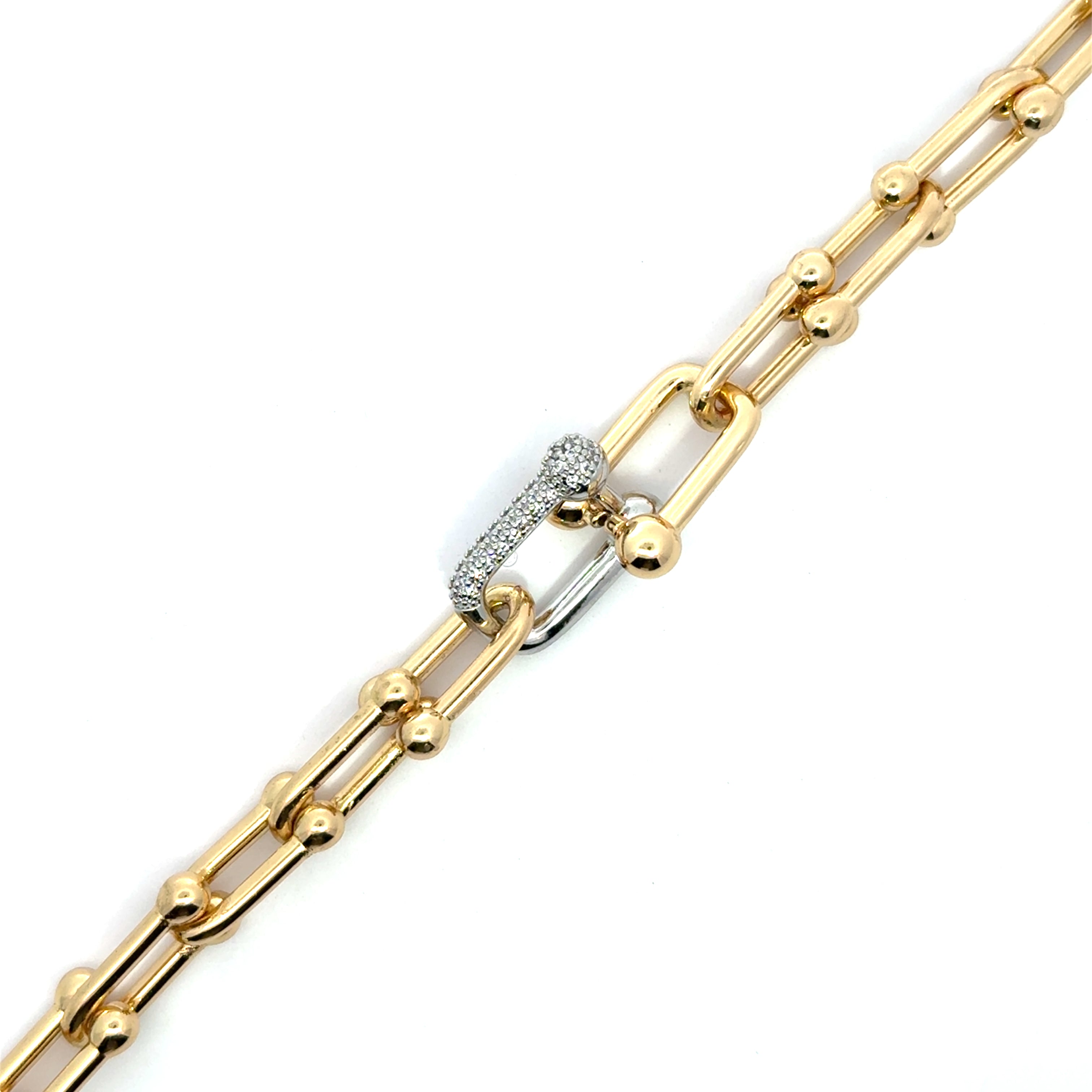 Aceasta brățara in doua nuante este declarația perfectă de stil — o piesă versatilă, cu un design modern și sofisticat. Realizată din lanț gros, în nuanțe îmbinate de auriu cald și argintiu rece, această brățară adaugă un contrast elegant oricărei ținute.
