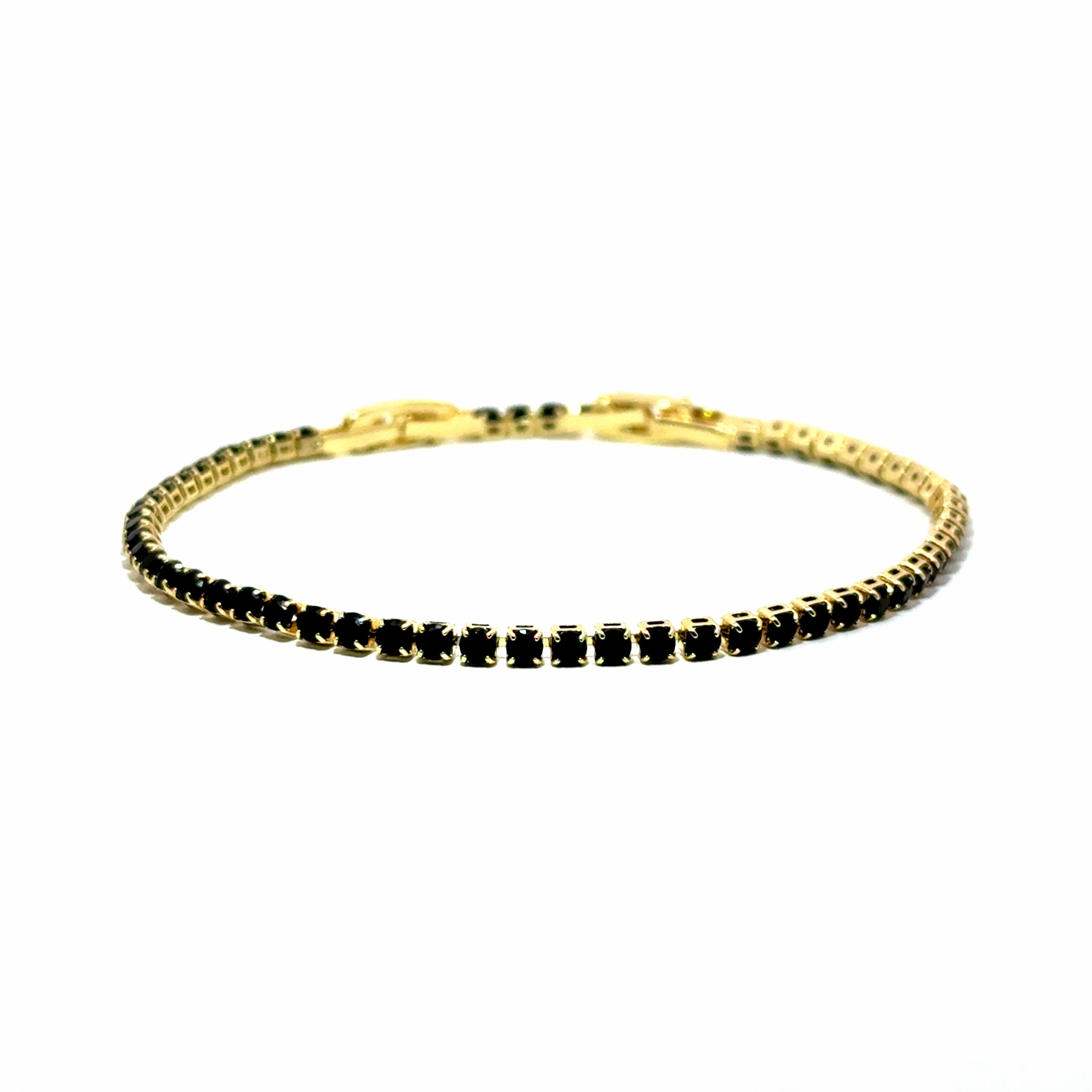 Bratara dama tennis din metale comune neagra, placata cu aur