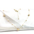 Design: Perle sintetice și bile din cristale zirconia îmbracate in aur de 18k, distribuite pe un lanț fin