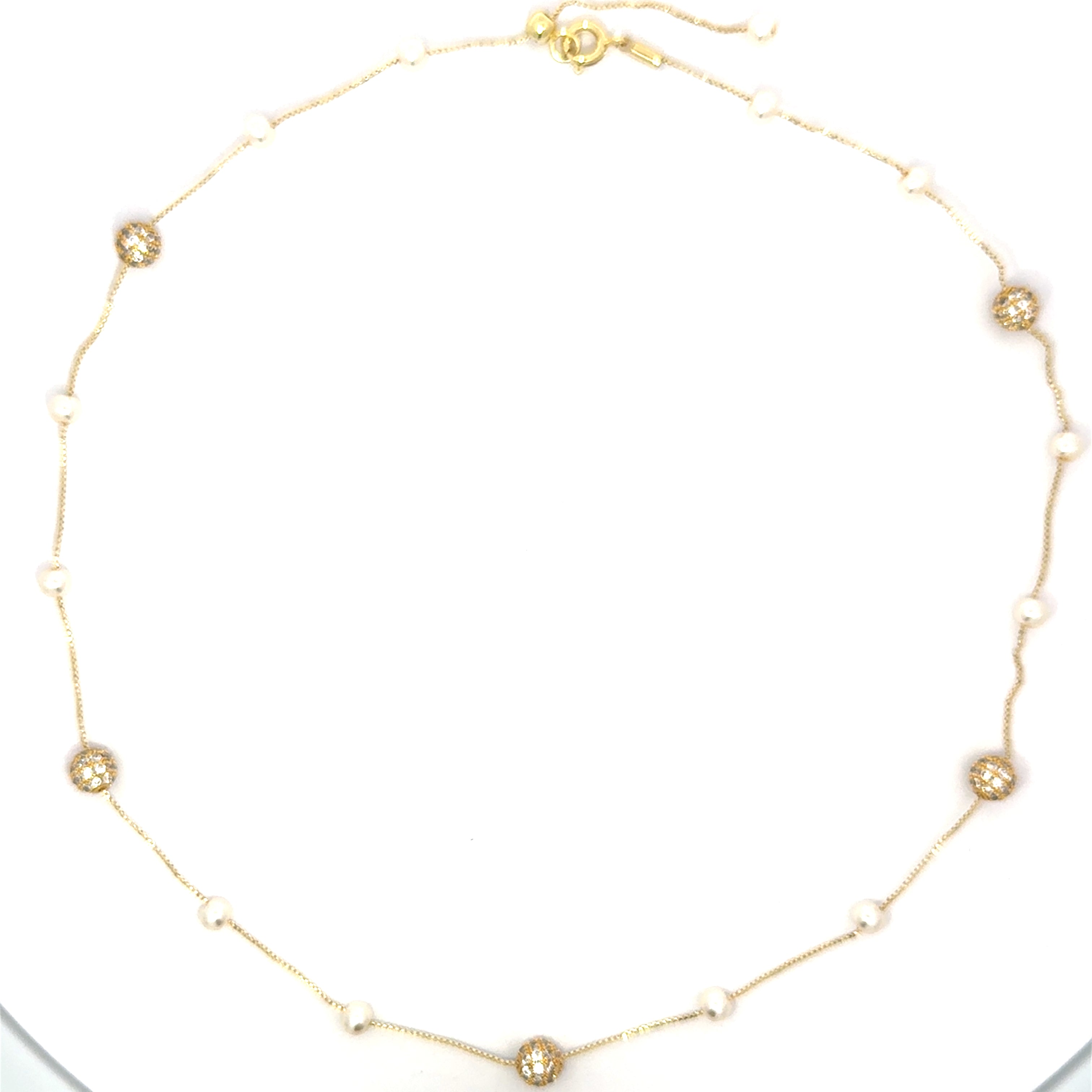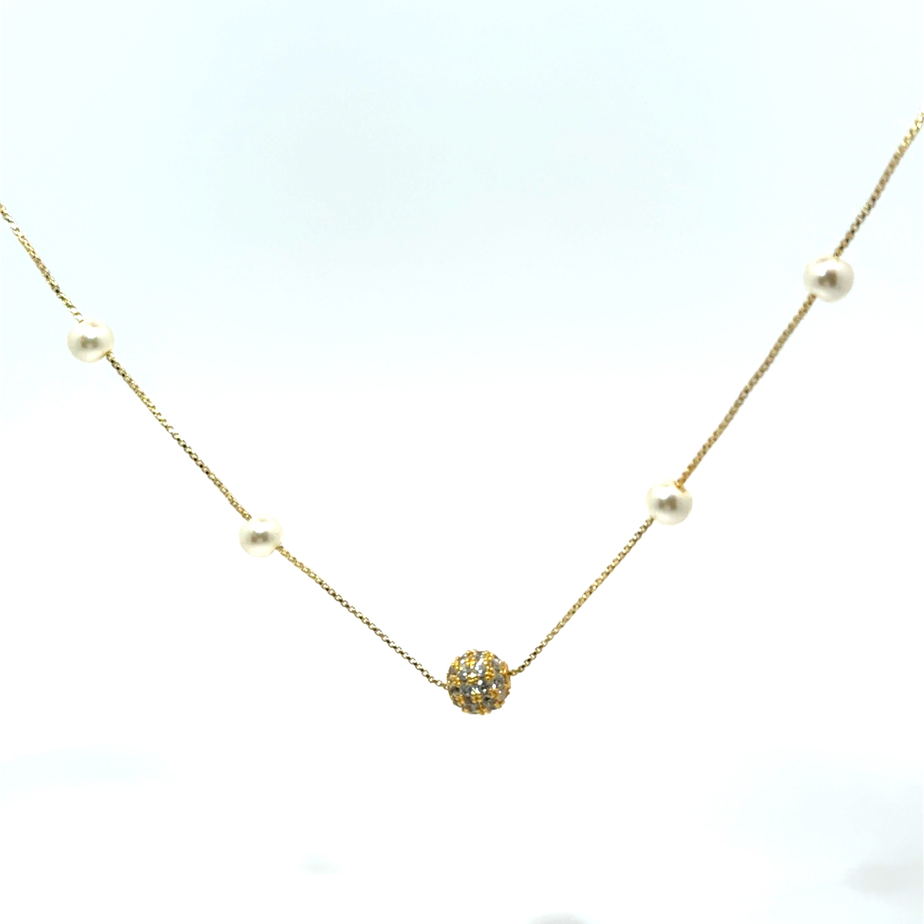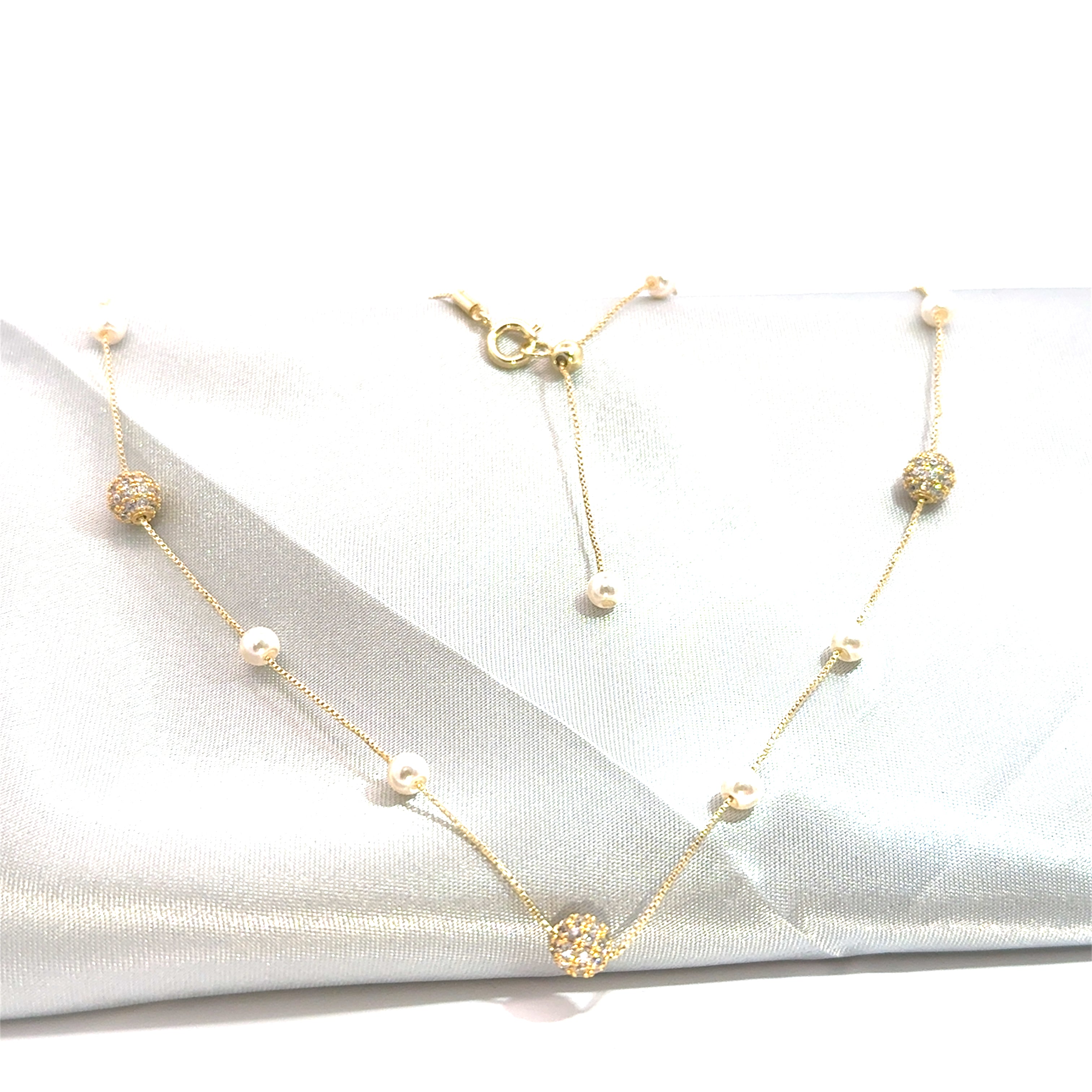 Colier damă SFERĂ, placat cu aur + zirconia și perle