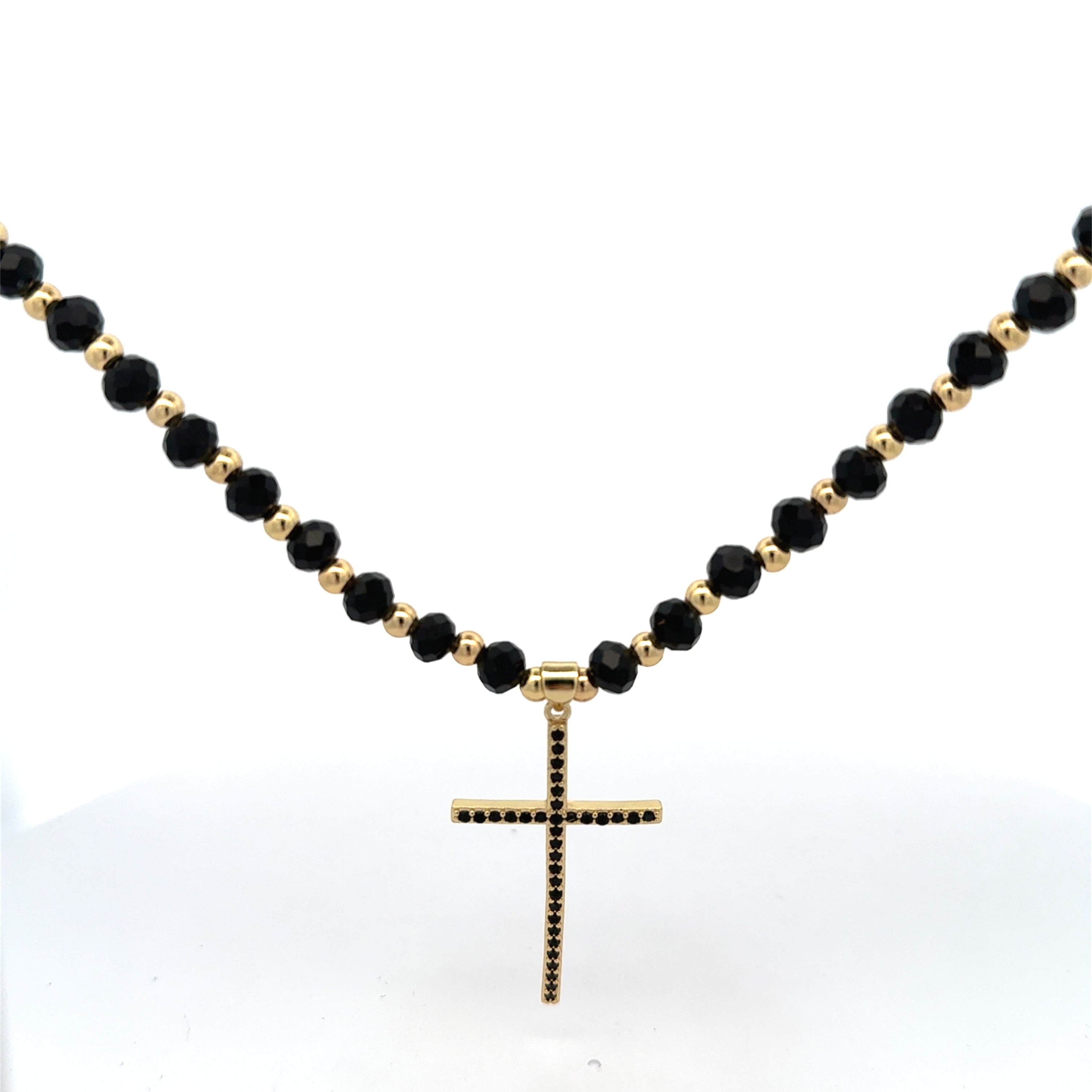 Lant barbati cu Cruce Icon , placat cu aur 18 k + cristal sintetic