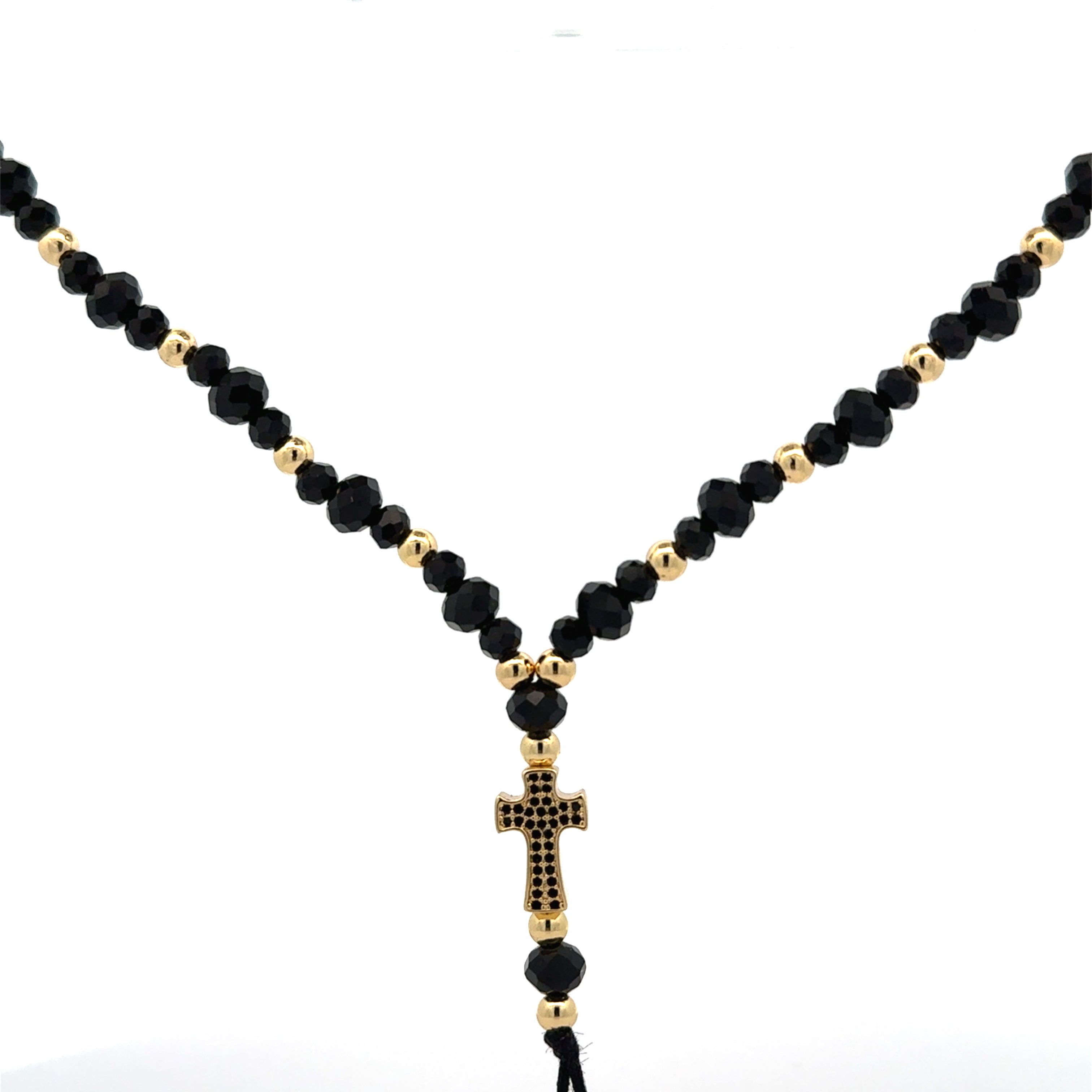 Un accesoriu rafinat, ce îmbină simbolul credinței cu eleganța atemporală. Lănțișorul este placat cu aur de 18K, iar pandantivul în formă de cruce este decorat cu cristale strălucitoare, oferind un plus de lumină și stil. Potrivit atât pentru purtare zilnică, cât și pentru ocazii speciale.